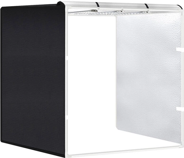 Sættet inkluderer tre PVC-baggrunde - sort, hvid og orange, sammen med et specielt stof, der blødgør lyset. Teltet tilbyder flere fotografimuligheder fra forskellige vinkler for de bedste resultater. Takket være sin mobilitet og nemme installation bliver det en uundværlig hjælp for enhver fotograf.
