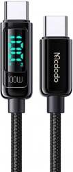 Takket være E-marker-chippen tilpasser kablet automatisk strømmen til den tilsluttede enhed og sikrer dermed hurtig og sikker opladning. Det indbyggede display viser ladeeffekten i realtid for din bekvemmelighed.