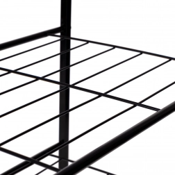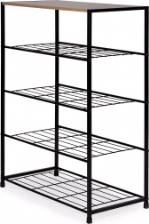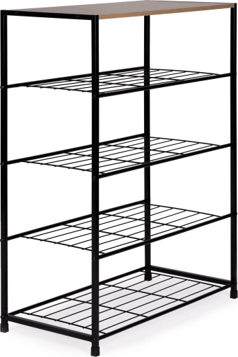 Den solide sorte ramme sikrer lang levetid og stabilitet selv ved fuld belastning. De luftige gitterhylder fremmer cirkulation og hurtig tørring af fodtøj.
