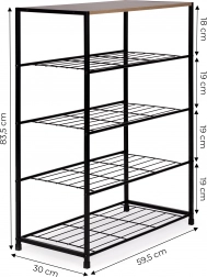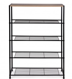 Bring orden og et moderne udtryk ind i din indretning. LOFT skoreolen fra ModernHome tilbyder fem praktiske niveauer til overskuelig opbevaring af sko og en kraftig øverste MDF-plade i egetræslook til småting. Luftige metalhylder muliggør luftcirkulation, så skoene ventileres bedre og tørrer hurtigere.