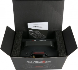 Enheden fungerer som starthjælper, powerbank og lygte med USB 3.0 hurtigopladning og tre lysfunktioner: konstant lys, stroboskop og SOS.