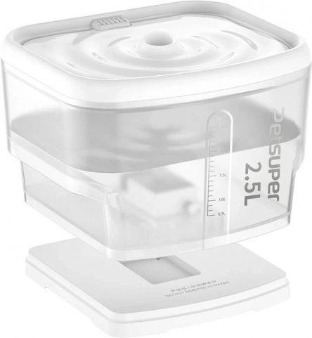 Smart springvand til hunde og katte PETSUPER PW03 med en kapacitet på 2,5 l sikrer konstant adgang til frisk og filtreret vand. Det tilbyder støjsvag drift på 30 dB, tretrinsfiltrering og automatisk slukning ved lav vandstand for sikker og bekvem brug.