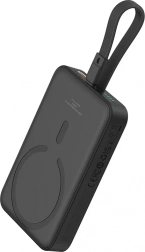 Det integrerede USB‑C-kabel har en dobbelt funktion – du kan oplade både telefonen og powerbanken, og når det klikkes i porten, fungerer det som en praktisk bæreløkke. Det kompakte kabinet forstyrrer ikke kameraobjektiverne, LED-indikatorer viser resterende kapacitet, og et bredt sæt af sikkerhedsbeskyttelser beskytter både dine enheder og dig.