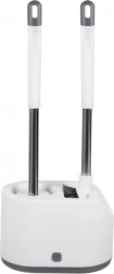 Sættet omfatter en lukket drypbakke med praktisk knap til hygiejnisk tømning af vand samt en selvklæbende vægholder, der sparer gulvplads. Metalhåndtagene i rustfrit stål er holdbare og lette at vedligeholde, og den hvid/grå farvekombination passer til ethvert badeværelse.