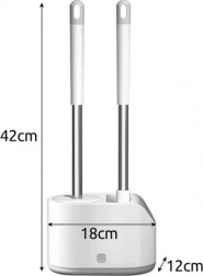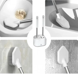 RUHHY-sættet indeholder to hoveder til et skinnende rent toilet uden besvær. Det runde TPR-hoved (termoplastisk gummi) er fleksibelt, ridser ikke keramikken og når nemt ind under kanten. Det flade trekantede hoved i robust PP klarer aflejringer på svært tilgængelige steder og i hjørner.