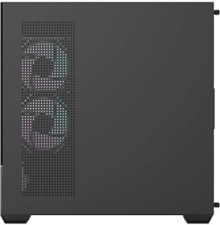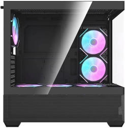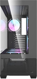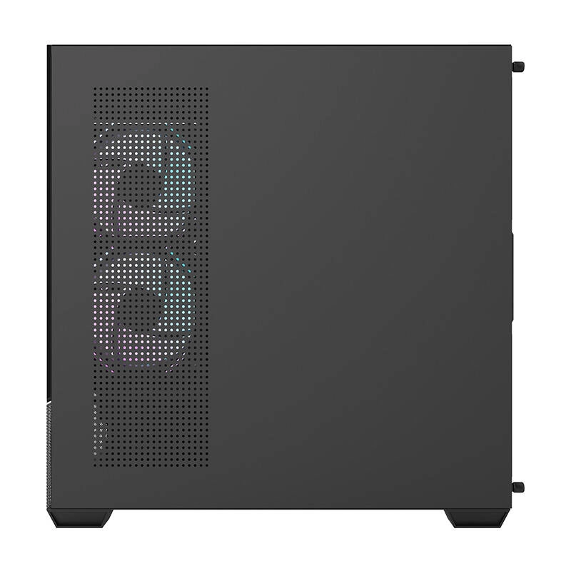 Kabinettet er klar til krævende køling: i pakken er der 6× DM12F 120 mm og i alt 7 ARGB-blæsere, desuden support til radiatorer 240/360 mm og et metalgitter for bedre varmeafledning. Takket være den smarte interne arkitektur kan du nemt montere VGA op til 425 mm, CPU-køler op til 170 mm, 2× SSD og 2× HDD.