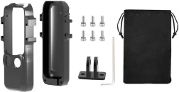 Til content creators tilbyder rammen brede udvidelsesmuligheder: et par cold-shoe adaptere til tilslutning af mikrofon eller LED-lys samt et nederste 1/4"-gevind til stativ, selfiestang eller holdere. En universel adapter muliggør hurtig montering og afmontering af kameraet, og monteringen lettes af et sæt skruer og en unbrakonøgle i pakken.