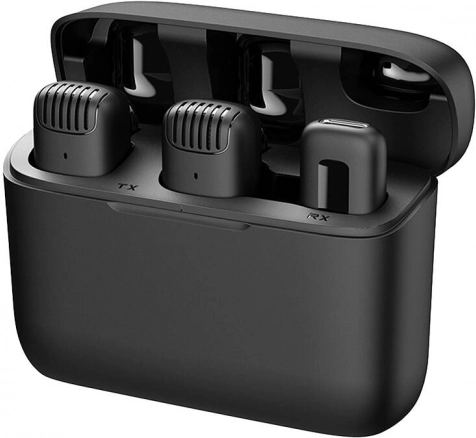 - Opladningsetui ×1, sender med mikrofon ×2, USB‑C‑modtager ×1, brugervejledning ×1, USB‑C opladningskabel ×2