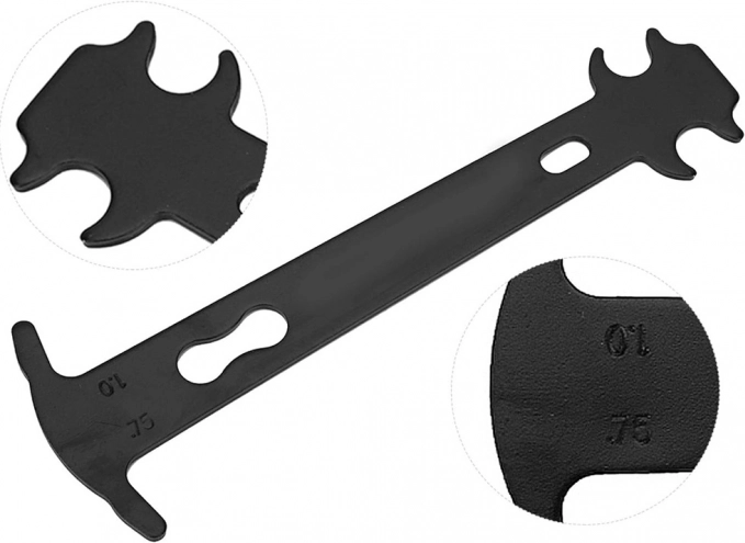Denne kædemåler i metal er et uundværligt værktøj til både daglig og sæsonmæssig cykelvedligeholdelse. Med de tydeligt markerede værdier 0,75 (kæden nærmer sig udskiftning) og 1,0 (kæden skal udskiftes med det samme) kan du hurtigt vurdere slidtilstanden og beskytte din drivlinje mod for tidlig skade.