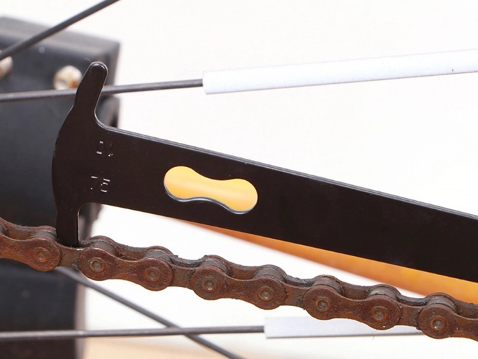 Du skal blot indsætte måleren mellem kædens led, og du ser straks resultatet. Ideel til en hurtig kontrol både hjemme og undervejs.
