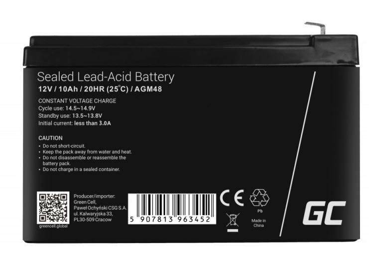 Green Cell AGM 12V-batteriet er en model fremstillet af materialer i høj kvalitet, velegnet til både buffer- og cyklisk drift. Batteriet er baseret på AGM-teknologi, hvilket betyder, at elektrolytten er absorberet i en separator af glasfiber, som forhindrer lækage. Takket være dette kan batteriet arbejde i mange positioner, ikke kun lodret. Det er et fremragende og langt mere sikkert alternativ til bly-syrebatterier.