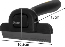 Skarpe tænder af rustfrit stål fjerner effektivt overskydende underuld uden at beskadige den øverste pelsslag.