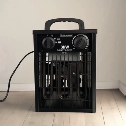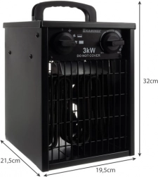 Den kraftige elektriske varmeblæser KAMINER med en effekt på 3000 W sikrer hurtig og jævn opvarmning af små og mellemstore rum på op til ca. 30 m². Den integrerede ventilator sørger for effektiv luftcirkulation og stabil termisk komfort hele dagen.
