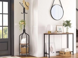 Et fremragende supplement til enhver entré, garderobe eller walk-in. Den elegante kombination af sort og rustik brun sikrer, at stativet passer ind i enhver indretning. Stativet hjælper med at holde styr på tøjet for både husstandens medlemmer, gæster eller kunder i din virksomhed.