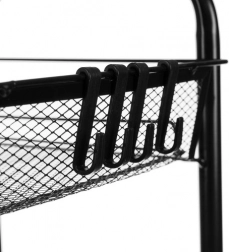 Pulverlakeret jern modstår korrosion og daglig slitage. Det åbne net sikrer overblik og luftcirkulation for hygiejnisk opbevaring.