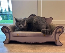 Denne stilfulde kattesofa Purlov forener komfortabel seng og horisontalt kradsebræt i ét praktisk tilbehør. Bølgepap motiverer katten til at kradse, mens den ergonomiske form sikrer behagelig sammenkrølning og længere afslapning. Det klassiske design, der minder om en mini-sofa, bliver en pynt i dit interiør.