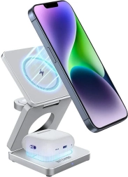Brugervenligt design3-i-1 opladeren er kompakt og bærbar, hvilket gør den let at opbevare og transportere. Desuden kan højden og vinklen frit justeres, og brugen af materialer i høj kvalitet resulterer i et holdbart produkt. Den er ideel til både hjemme- og kontorbrug, såvel som til rejser og forretningsrejser.