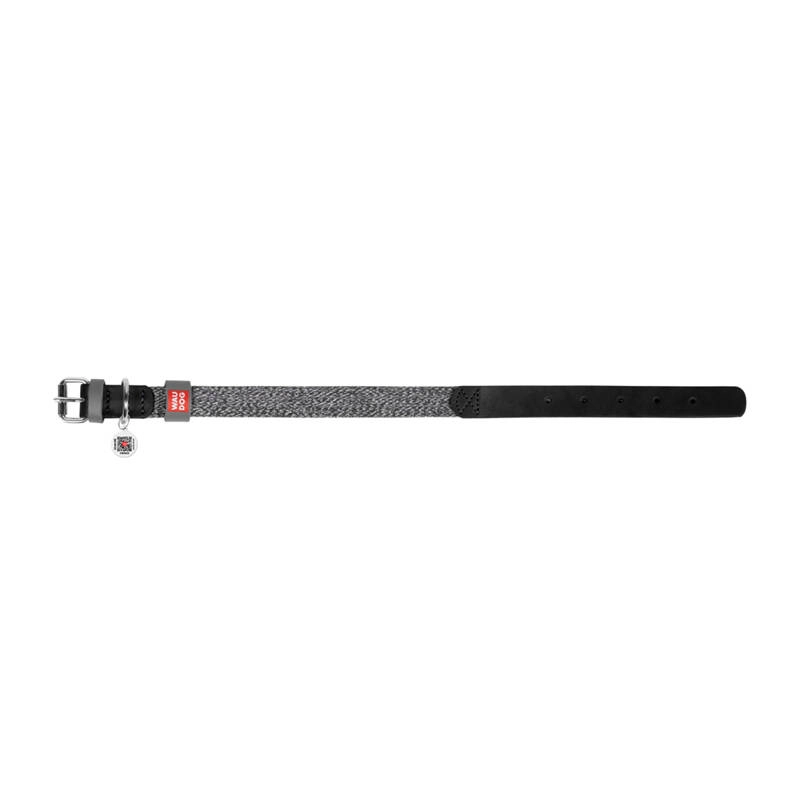 Læderhalsbånd af naturlæder og genanvendt bomuld med WAUDOG QR-kode til mellemstore hunde – Sort