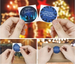 Dette dekorative klistermærkesæt tilbyder et bredt udvalg af julemotiver som rensdyr, træer og festlige hilsener. Hver rulle indeholder 500 klistermærker i otte forskellige designs, som sikrer nok dekorationer til hele højtiden.