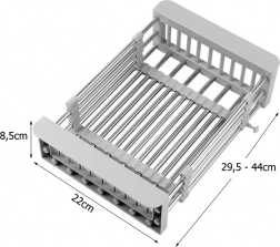 Det minimalistiske grå design passer i ethvert køkken, og takket være den enkle vedligeholdelse er risten klar til brug på ingen tid. Mål: 22 × 8,5 × 29,5–44 cm giver en fremragende balance mellem kapacitet og kompakthed.