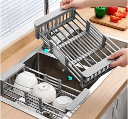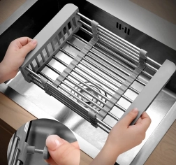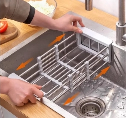 Denne udtrækkelige opvaskerist over vasken udvider din arbejdsflade og gør de daglige køkkenopgaver mere effektive. Takket være den teleskopiske konstruktion passer den til de fleste vaske og giver bekvem skylning og tørring af frugt, grøntsager og service direkte over vaskekummen.