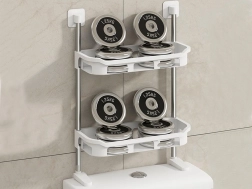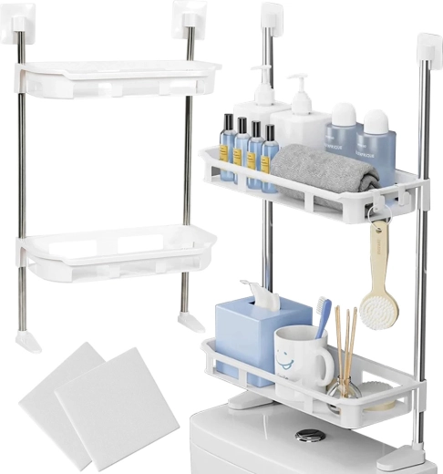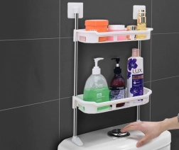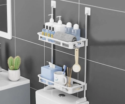 Denne vægmonterede hylde over toilettet er et ideelt valg til både små og store badeværelser. De to niveauer giver rigelig opbevaringsplads til flasker, sæber, håndklæder og børster og holder samtidig alt inden for rækkevidde. Det minimalistiske design i hvid passer nemt ind i de fleste interiører.