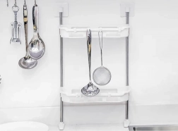 Hurtig installation med medfølgende fastgørelsesdele. Den stabile konstruktion kombinerer robuste plastikhylder og solide metalstænger.