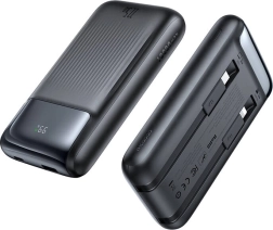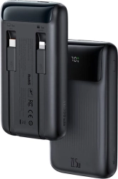 Vent ikke på, at én enhed bliver færdigopladet. Mcdodo powerbanken tilbyder to udgangsporte (USB-A og USB-C) og to indbyggede kabler (USB-C og Lightning), så du nemt kan betjene iPhone, Android og anden elektronik på samme tid. Det overskuelige LED-display viser i realtid de resterende procent af kapaciteten.