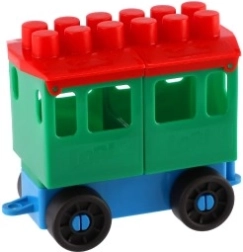 Byggesættet tilbyder en klart farvet lokomotiv og fem vogne. Disse farver tiltrækker opmærksomhed og fremmer børns kreativitet.