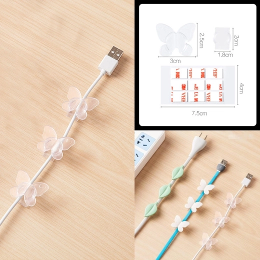 Dekorativ kabelholder i form af en sommerfugl hjælper med at holde kabler og ledninger samlet. Ideel til montering på steder som vægge, natborde, tv-møbler eller skriveborde.