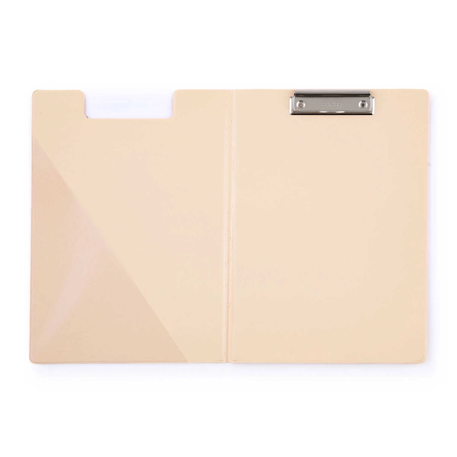Lukbar skriveunderlag med metalclip fremstillet af solid pap. Tilbyder moderne pastelfarver og indvendig gennemsigtig lomme til nem organisering af dokumenter.