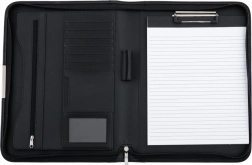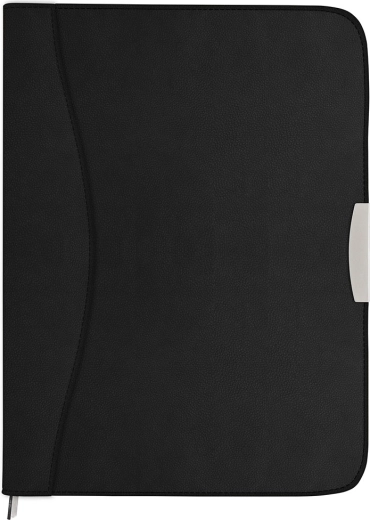 Elegant og funktionel dokumentmappe i sort mat finish. Lynlåslukning, ideel til møder og forretningsforhandlinger. Indeholder A4-blok og praktiske rum til alle dine behov.