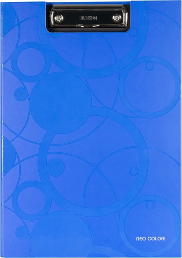 Praktisk dobbeltmappe i A4-format med lamineret overflade i blå farve. Tilbyder en lukbar skriveunderlag med solid metalclip og er lavet af ekstra kraftig pap for lang holdbarhed og komfortabel skrivning selv på farten.