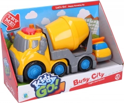 Dette Kiddy-sæt giver børn realistisk byggeleg. Hovedbilen, en lastbilblander på 19,5 cm, begejstrer med lys- og lydeffekter, som nemt aktiveres ved at trykke på knappen på kabinens tag. Traileren med blander kan drejes, hvilket understøtter finmotorik og fantasifuld leg.