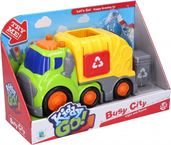 Kiddy skraldebil med lys- og lydeffekter 19,5 cm med skraldespand