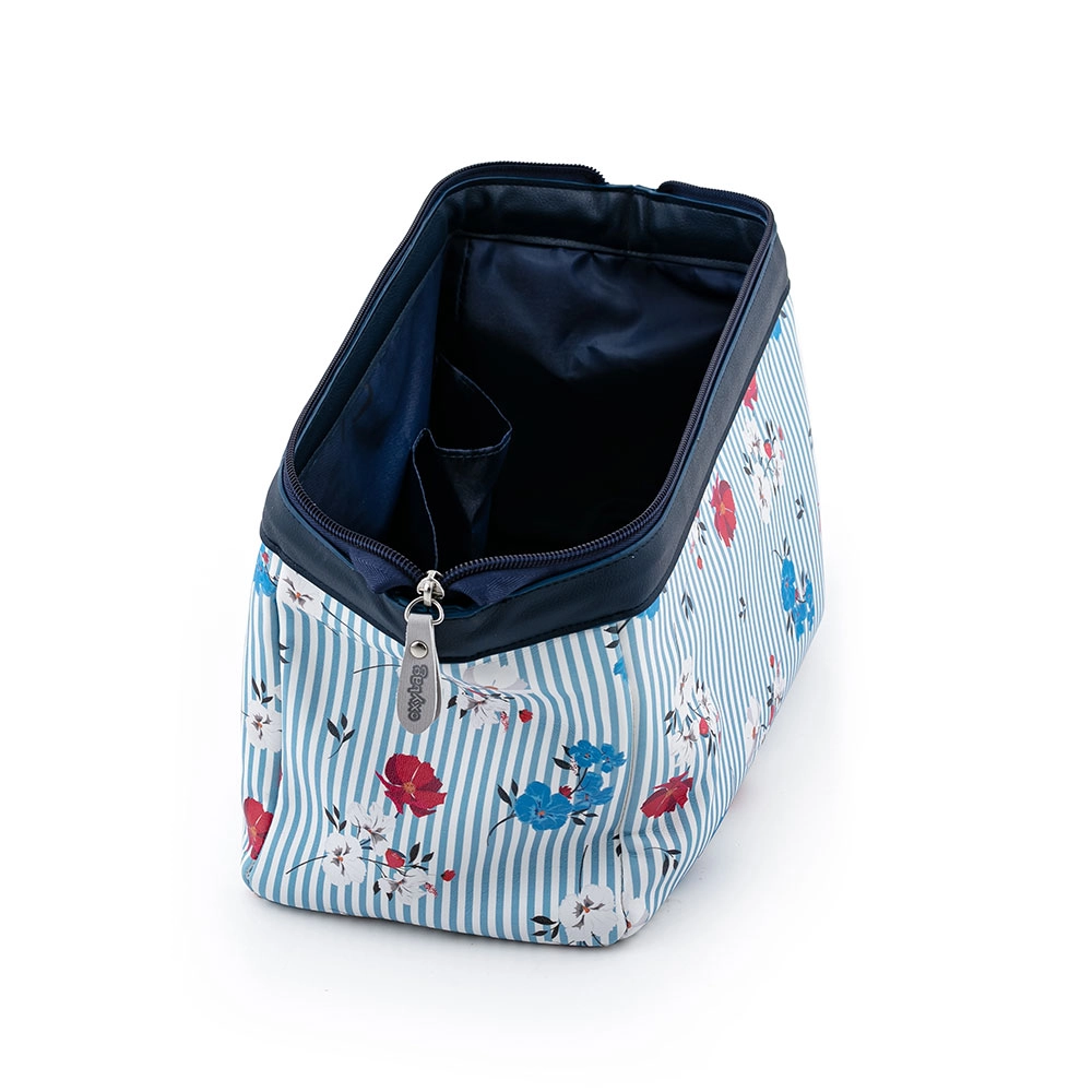 Kosmetikpungen Holiday Navy med et elegant blomstermønster er skabt til moderne kvinder, der vil have deres kosmetik lige ved hånden. Materialet er holdbart og let at rengøre, hvilket gør den til en ideel ledsager på ferien såvel som i hverdagen.