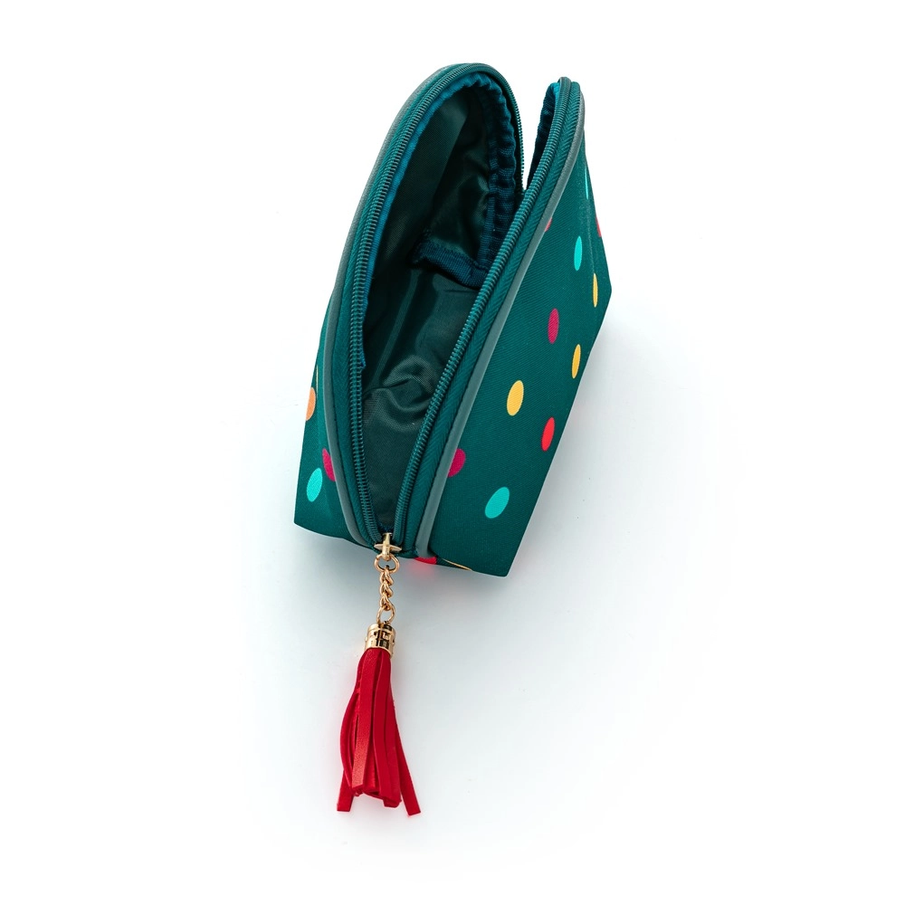 Rejsekosmetiktasken Happy Dots er ideel til opbevaring af mindre toilet- og kosmetikartikler. Takket være dens kompakte størrelse er den let at bære og praktisk på farten.