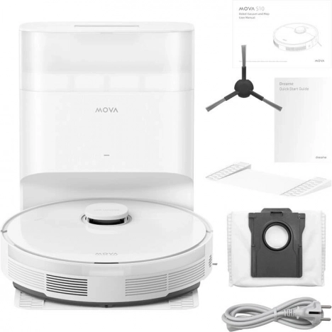 MOVA S10 Plus er en smart robotstøvsuger med moppe, der effektivt rengør hårde gulve og tæpper. Den tilbyder sugning på 7.000 Pa, automatisk effektforøgelse på tæpper (Carpet Boost) og vibrationsmopning med op til 3.500 vibrationer/min. Basen med automatisk tømning, DualBoost 2.0, opbevarer støv i en 4 l pose med 99,7 % filtreringseffektivitet og giver op til 90 dage uden manuel tømning.