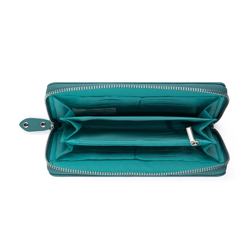 Leder du efter en pung, der ikke kun er elegant, men også praktisk? Denne store damepung fra MONY L Leather Milano i petroleumstoner er et fremragende valg. Den tilbyder rigelig plads og gennemtænkt organisering, så den er maksimal funktionel og samtidig bevarer stilen.