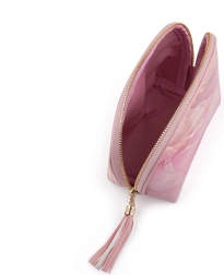 Denne elegante rejse-kosmetikpung er ideel til hverdagsbrug og weekendture. Den runde form og det lyserøde design med marmormønster gør den til et stilrent tilbehør, som nemt passer i håndtaske, rygsæk eller håndbagage.