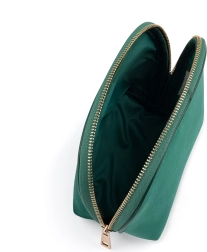 Praktisk rejsekosmetikpung med rund form i elegant grøn, ideel til opbevaring af mindre toilet- og kosmetikartikler. Takket være de kompakte mål 15,5 × 14 × 7,5 cm har du alt overskueligt lige ved hånden hjemme og på farten.