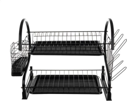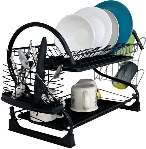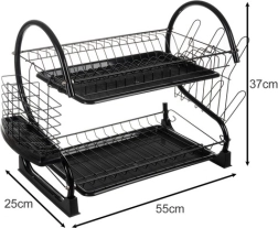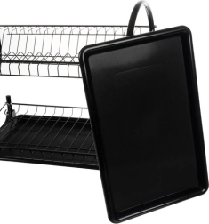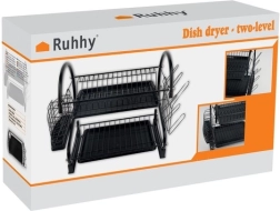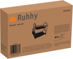 Oplev en revolution inden for opvaskning med to-lags opvaskestativ Ruhhy, som tilbyder solid konstruktion i metal med moderne sort udseende. Takket være to-lags design, udnyt køkkenpladsen fuldt ud, hvor det øverste lag er ideelt til 16 tallerkener, mens det nederste lag er perfekt til skåle, kopper og glas. Hvert lag er udstyret med en egen bakke til opsamling af vand.