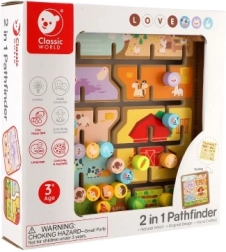 Pædagogisk trælabyrint 2-i-1 CLASSIC WORLD – bondegård og alfabet, 30 × 30 cm