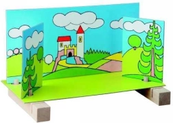 Det magnetiske teater med slotstema forvandler bordet til en lille scene, hvor børn nemt får figurerne til at bevæge sig ved hjælp af magnetiske styrepinde. Træfigurerne med indlimet magnet glider jævnt over scenen, og med to sæt kulisser kan historierne nemt varieres.