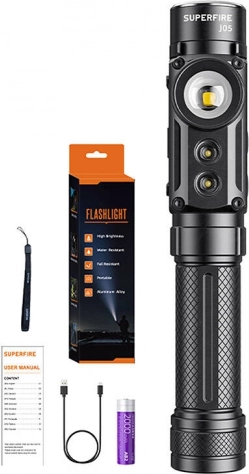 Lommelygten Superfire J05 tilbyder nem transport takket være det kompakte design med bælteklips og snor. Du kan tage den med overalt for maksimal komfort. Forskellige lysfunktioner som gult, rødt, violet lys og strobe muliggør bred anvendelse. Høj farvegengivelsesindeks (CRI ≥ 95%) sikrer præcis farvegengivelse af oplyste objekter.