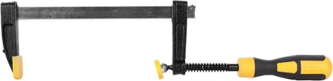 Denne professionelle tvinge er fremstillet af A3-stål, hvilket sikrer dens styrke og holdbarhed. Den er ideel til træbearbejdnings- og konstruktionsopgaver, hvor der lægges vægt på præcision og stabilitet. Det praktiske sorte og gule håndtag muliggør et behageligt greb.