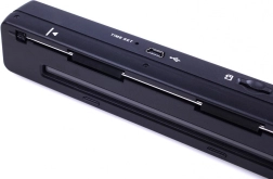Scanneren drives af to AA-batterier, så den er klar til brug i bilen, på biblioteket, på kontoret eller under et forretningsmøde. Filerne kan derefter overføres til en computer via USB eller ved at tage kortet ud. Pakken inkluderer også ABBYY OCR (Screenshot Reader) til nem konvertering af scannede JPEG-filer til redigerbare Word- eller Excel-dokumenter.
