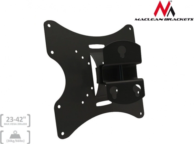 Beslaget muliggør sikker montering af enheder op til 30 kg og understøtter de mest anvendte VESA-mønstre fra 75×75 til 200×200 mm. Monteringen er hurtig og problemfri – i pakken finder du et komplet sæt skruer til både væg og tv samt en overskuelig manual.