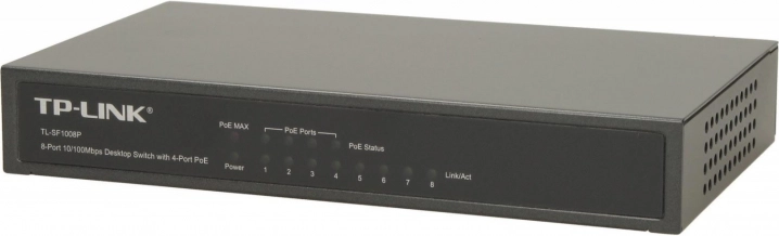 - 8 porte 10/100M RJ45, hvoraf 4 porte er PoE (1-4)