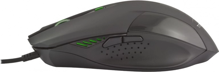 Musen har i alt seks knapper, inklusive sideknapperne 'Næste' og 'Forrige', som gør navigation lettere ikke kun i spil, men også ved internetbrowsing og arbejde med store filer. Det diskrete og stille rullehjul sammen med den attraktive grønne LED-bagbelysning giver musen et moderne udseende.